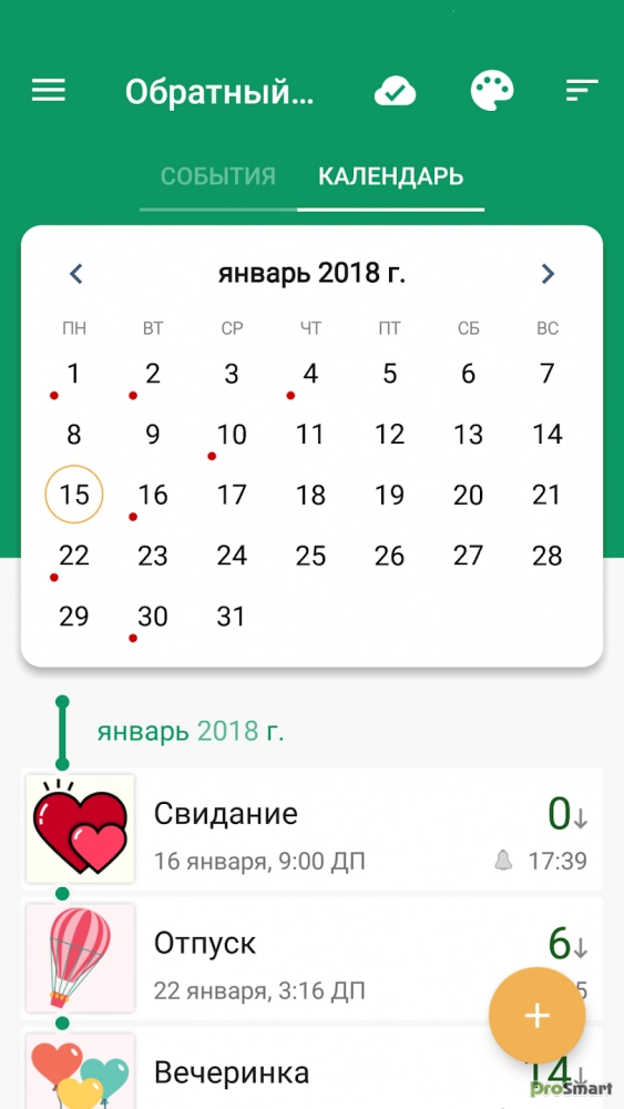 Благодаря приложению Обратный отсчет вы nе пропустите больше день рождения, юбилей, свадьбу или матч. Вы вручную подсчитываете сколько времени осталось до какого-то важного события, такого как: роды, военная служба, заработная плата, бонусы, отдыхи, день рождения, дату появления ребенка на свет, Новый год? С помощью счетчик дней не пропустите ни одного важного события.