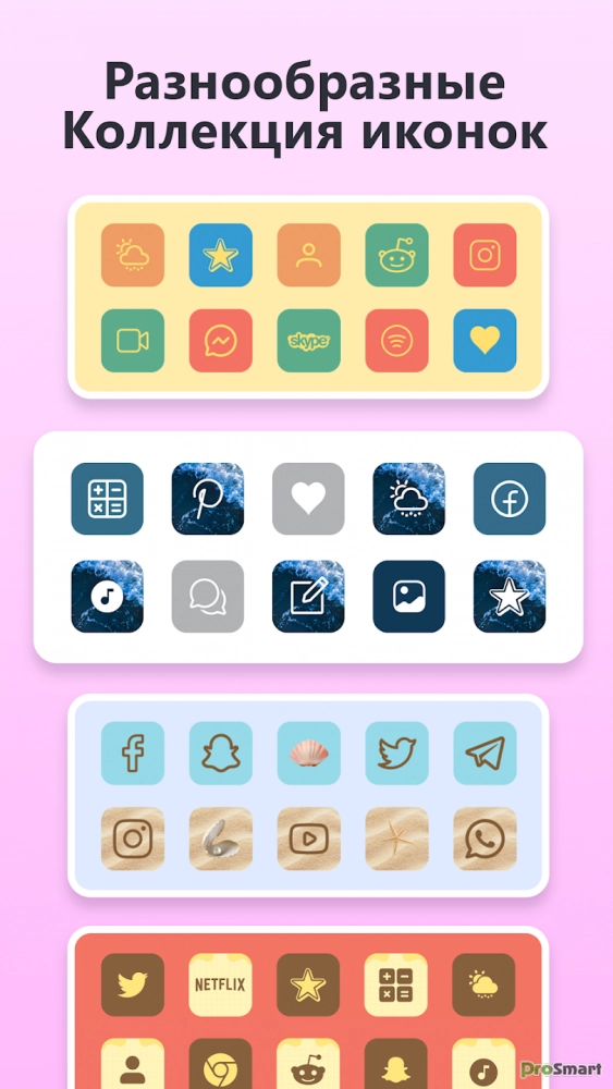 Изысканные пакеты значков. Настройте значки своих приложений с помощью нашего широкого выбора пакетов значков. Каждый пакет тщательно разработан, чтобы органично сочетаться с выбранной вами темой и придавать вашему домашнему экрану целостный вид.