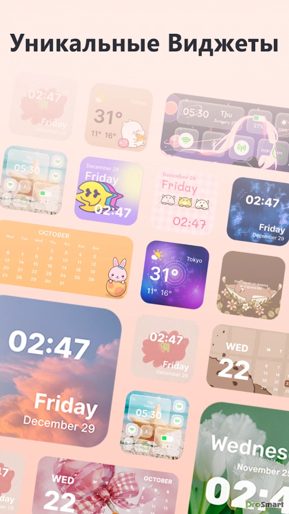 Уникальные виджеты. Добавьте функциональности и стиля своему главному экрану с помощью нашей коллекции виджетов. От прогнозов погоды до виджетов календаря — Themes: Значки, Виджеты предлагают множество опций, которые помогут держать вас в курсе и организовывать ваш экран.