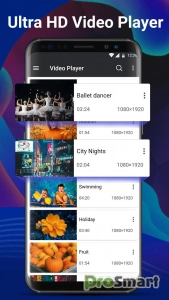 HD Video Player с полными функциями - простой, но мощный и быстрый видеоплеер, который вы можете без проблем снимать HD и ультра HD видео почти всех форматов на вашем устройстве Android! HD Video Player использует аппаратное декодирование с наименьшим размером и меньшим объемом использования памяти, что делает вашу видеоигра более быстрой и плавной воспроизведения HD!