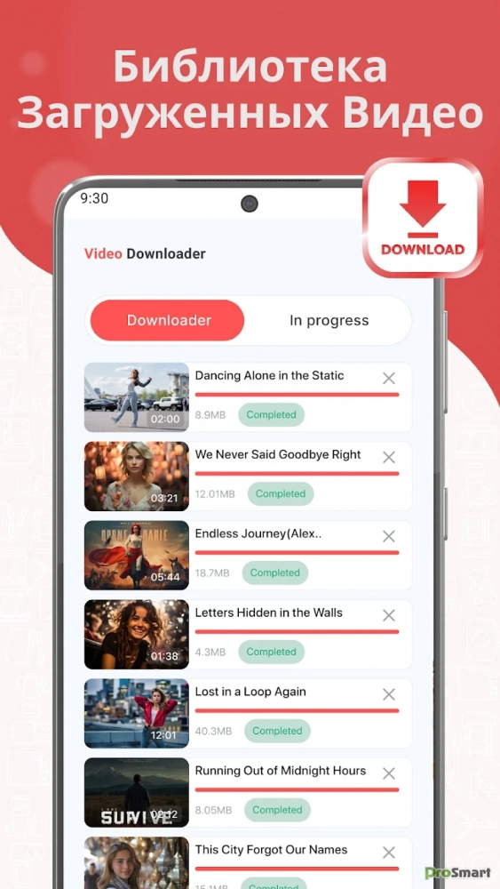 📂 Откройте сохранённые видео на вкладке Загрузки и воспроизведите их с помощью встроенного плеера.