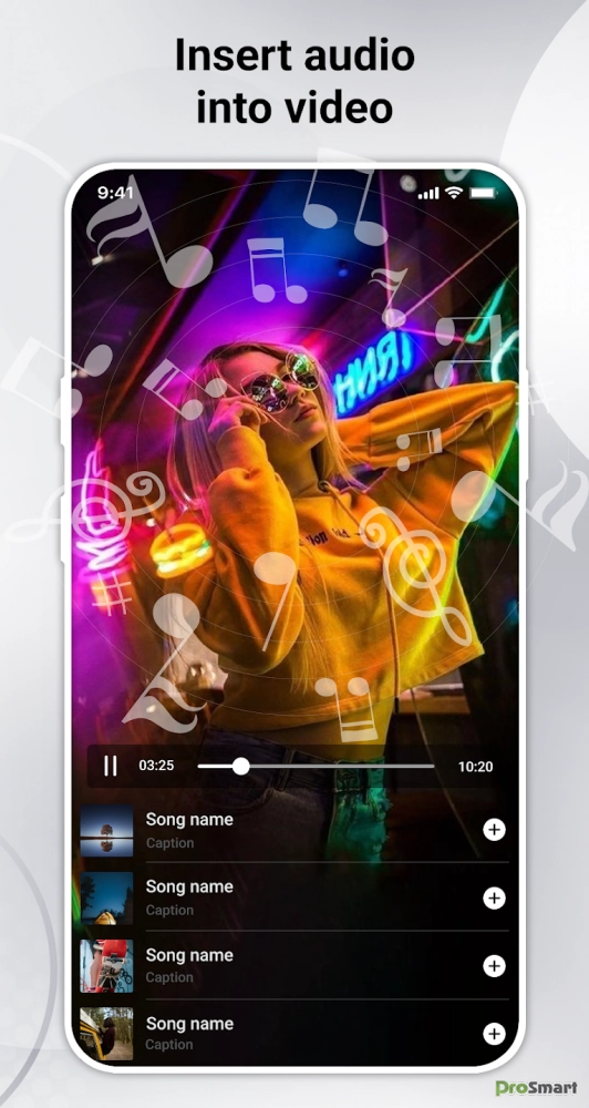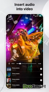 - Добавление музыки к видео: Добавляйте любимые песни к видео, регулируйте громкость и отключайте исходный звук видео.
