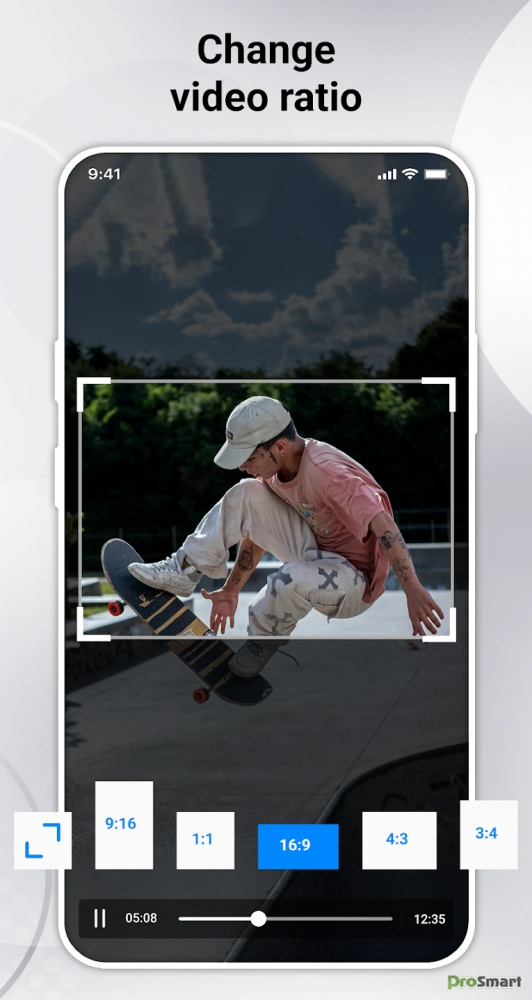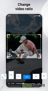 - Изменение соотношения сторон: Настройте соотношение сторон видео до 1:1, 4:3, 3:2, 16:9, 21:10 и т. д.