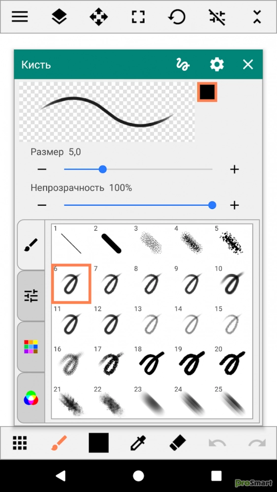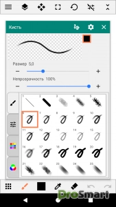Для кистей типа пера толщина линии меняется в зависимости от приложенного давления.