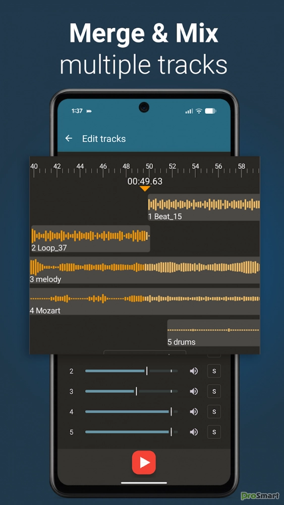 - Создание мультитреков. Смешивайте и объединяйте разные треки, чтобы создавать свою собственную музыку.