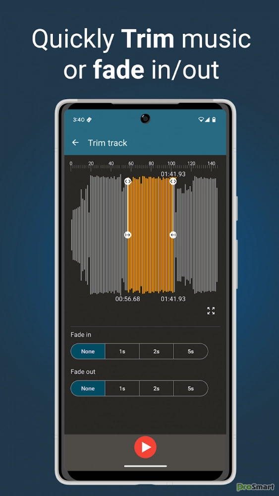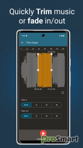 - Быстрое редактирование аудио: легко обрезайте музыку, добавляйте постепенное появление и затухание.