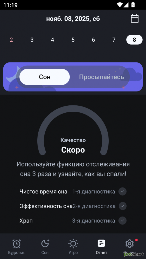 Прекрасное утро начинается с хорошего сна. Используйте наш трекер сна, чтобы контролировать свой цикл и уменьшить храп.