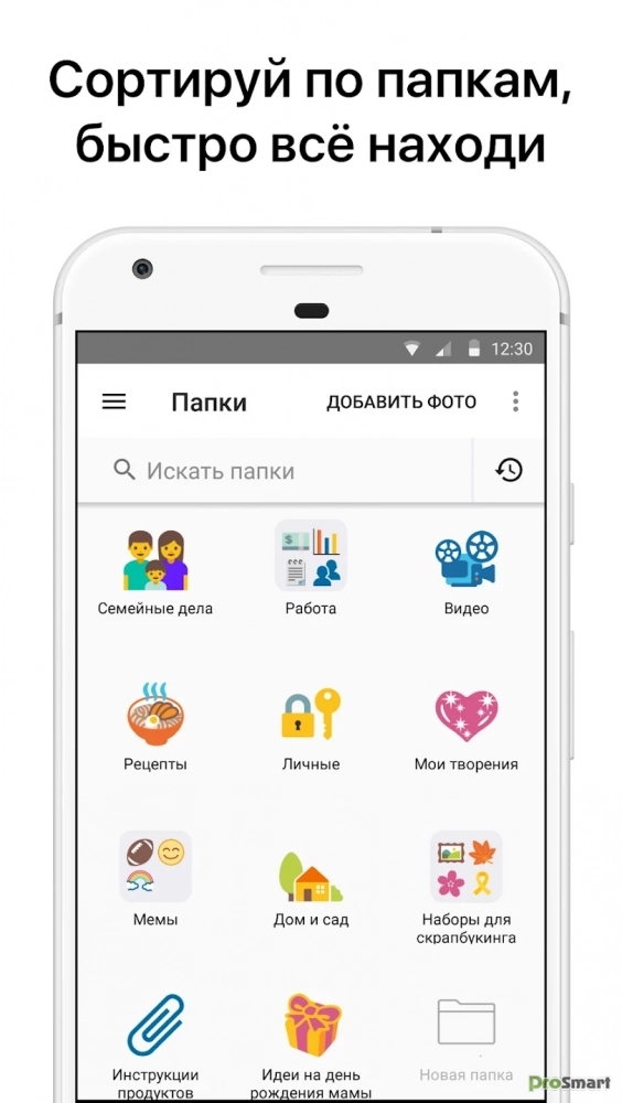 • Сортировать фотографии по отдельным категориям — работа, хобби, личные и многое другое.