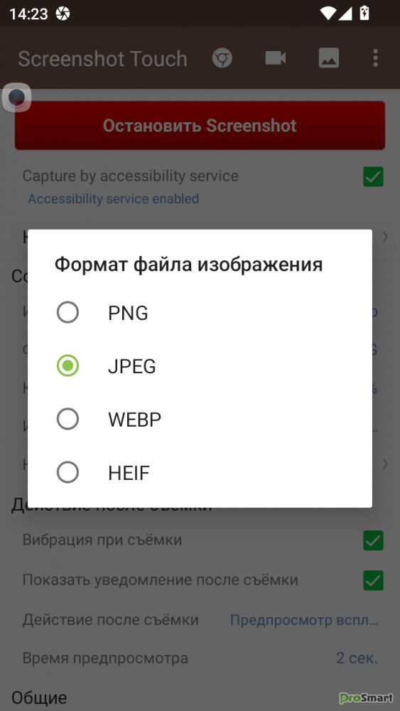 Отображение статуса службы захвата экрана и отображение результатов захвата экрана в виде уведомлений.