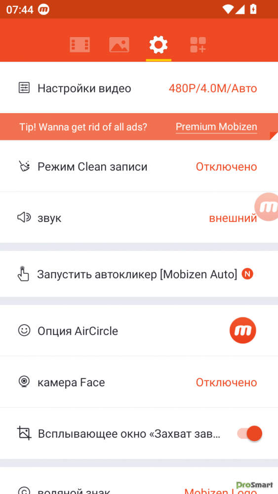 Если реклама по-прежнему отображается, перейдите на вкладку «Настройки» ➤ «Премиум Mobizen» ➤ «Удалить рекламу» и выключите/отключите все