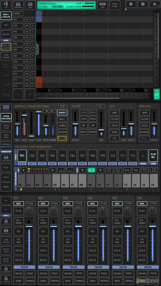 • Сэмплер/драм-машина: драм-машина, основанная на сэмплах, макс. 24 трека