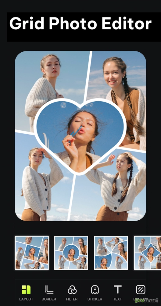 Это универсальное приложение для редактирования фотографий предлагает такие инструменты, как обрезка, фильтры, наклейки Giphy, текст и фоторамки. С легкостью создавайте потрясающие фотомиксы и выводите свои видео на новый уровень с помощью универсального редактирования видеосетки. Предпочитаете ли вы стиль фотосетки 2025 или классические макеты коллажей, в QuickGrid есть всё необходимое.