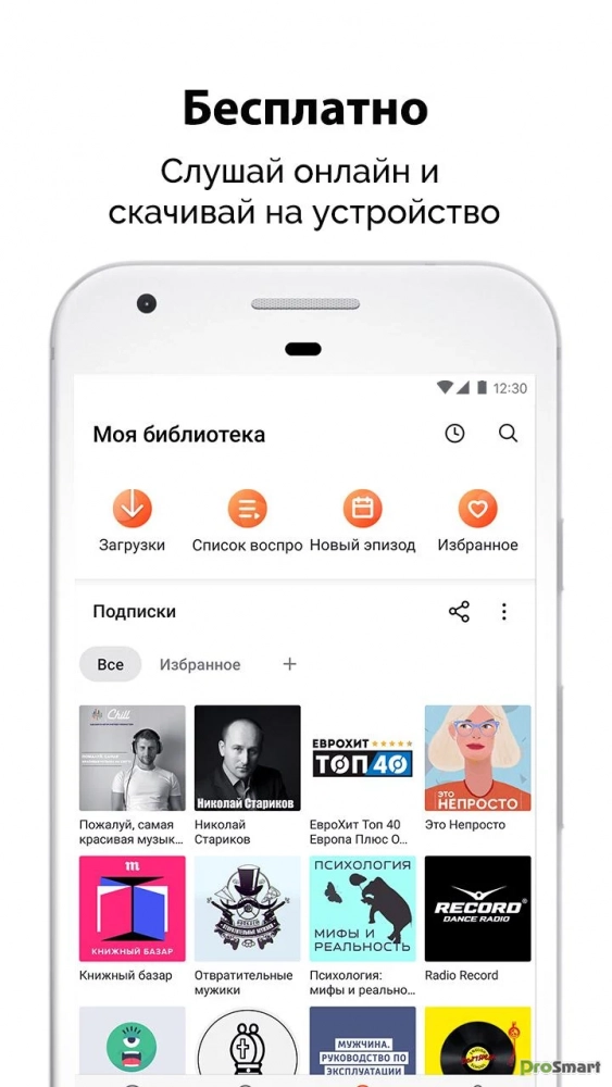 - Следите за своими подписками с помощью облачной синхронизации. Слушайте с любого устройства в любое время и в любом месте.