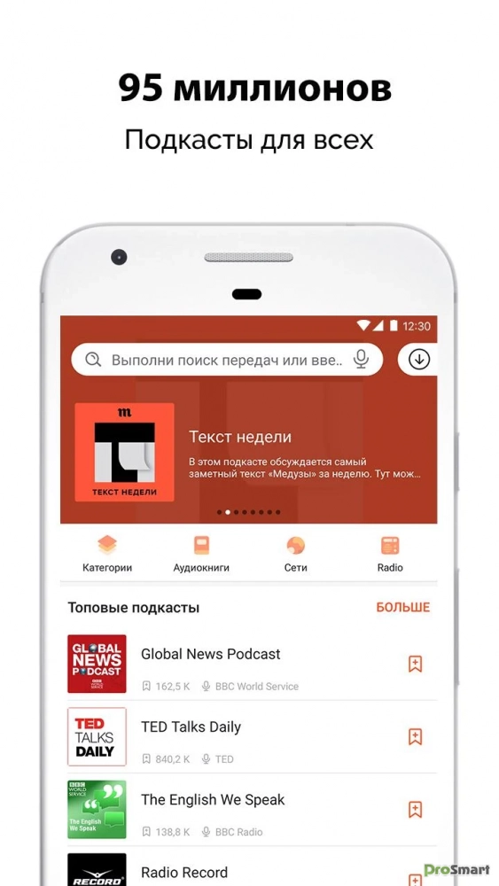 - Находите новые подкасты благодаря ежедневным спискам трендов и спискам самых популярных шоу.
