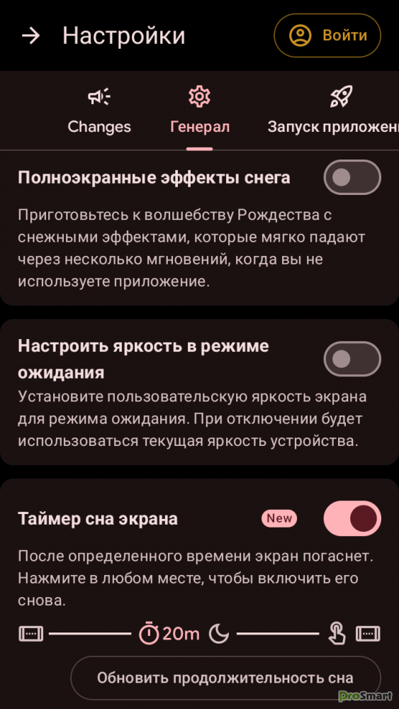 • Экспериментальная заставка для устройств в режиме ожидания