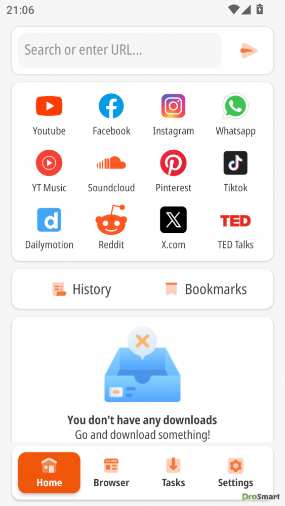 Скачать: скопируйте любой URL-адрес видео или используйте встроенный браузер.