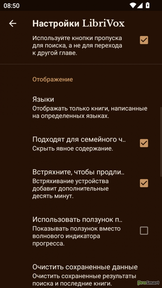 Поиск, закладки и таймер сна.