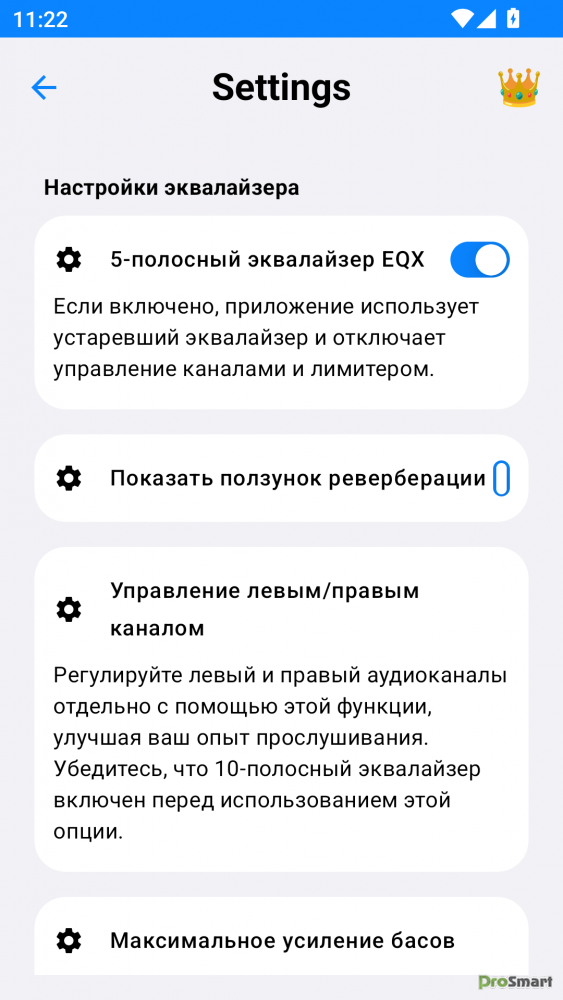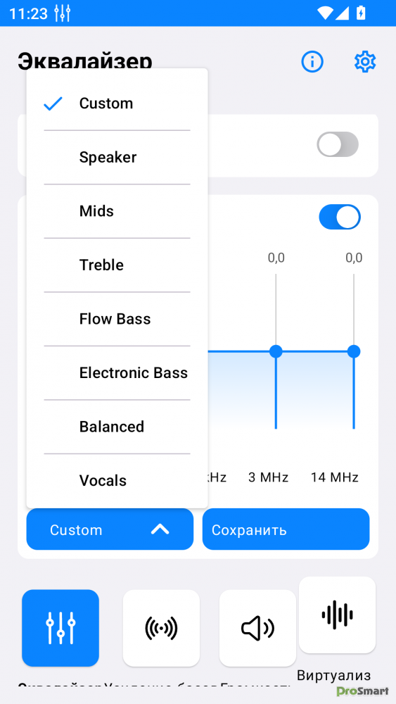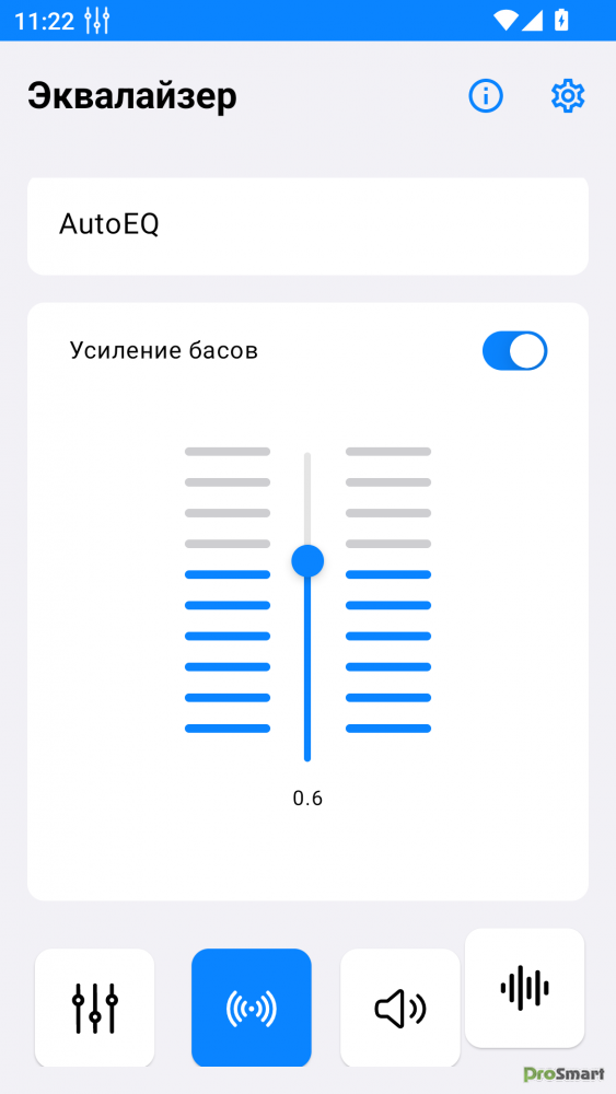 Зажигаете ли вы под рок, расслабляетесь под классику или наслаждаетесь электронными ритмами, Wave Equalizer FX предоставит вам полный контроль. Настройте звук с точностью с помощью нашего усовершенствованного 10- или 5-полосного эквалайзера, создавая чёткие басы от кристально чистых высоких частот до громоподобных низких. Усильте басы с усилением до 50 дБ, добавив глубины и мощи вашим любимым трекам.