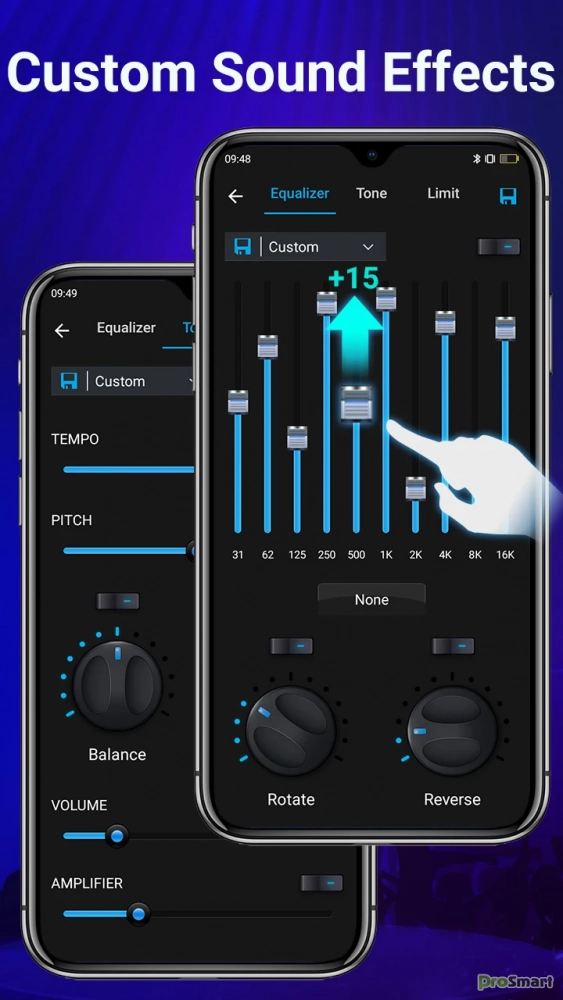 - Улучшите свои музыкальные впечатления с помощью 12 потрясающих пресетов, 10 полос, усилителя, усилителя басов, смены звука, музыкального виртуализатора, настроек эффектов 3D-реверберации и многого другого.