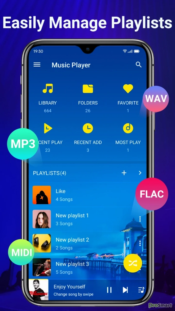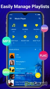 - Поддержка всех форматов музыкальных файлов: MP3, MP4, WAV, M4A, FLAC, 3GP, OGC и т. д.