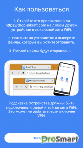 Несмотря на то, что оно отлично работает в вашем браузере без какой-либо установки, вам понравится это приложение, если вы будете регулярно использовать ErikrafT Drop в повседневной жизни. Благодаря полной интеграции с операционной системой Android передача файлов становится еще быстрее. Вы можете обмениваться файлами непосредственно из других приложений с помощью ErikrafT Drop. Благодаря своей радикальной простоте ErikrafT Drop для Android упрощает повседневную жизнь сотен пользователей.