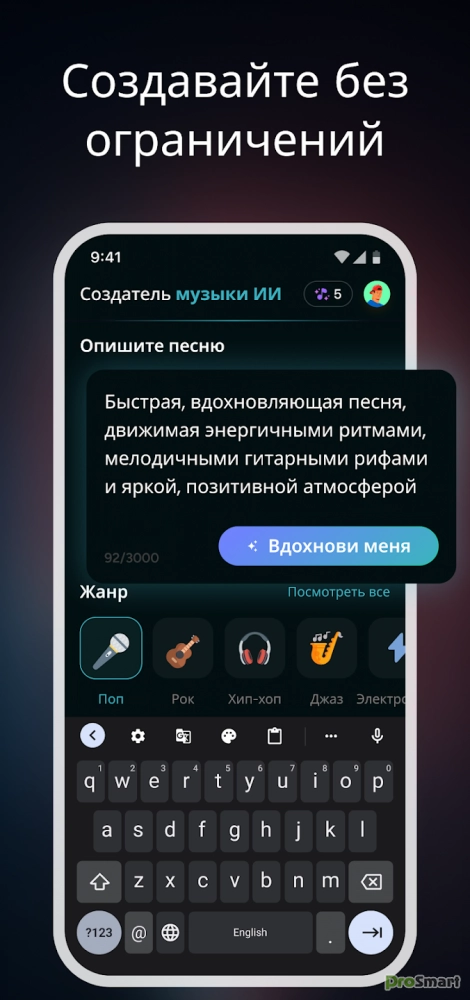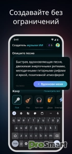 🎼 Выбор настроения — создавайте песни, которые соответствуют таким эмоциям, как счастье, романтика, грусть, расслабление