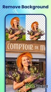 • Одно касание, чтобы удалить и изменить фон фотографии за секунду