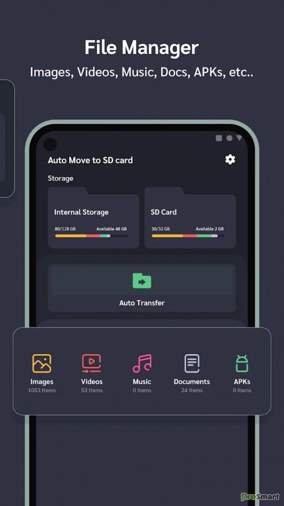 - Приложение помогает автоматически переносить файлы из внутренней памяти во внешнюю, экономя ваше время и усилия.