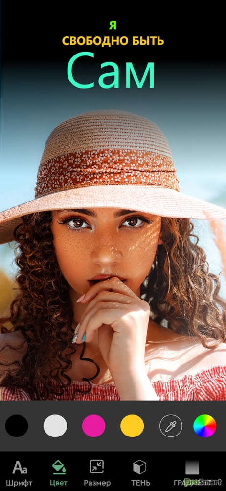 - добавить надписи предоставляет сотни фотографий и выбор однотонных цветов для написания текста на фотографии - добавить текст на фото.