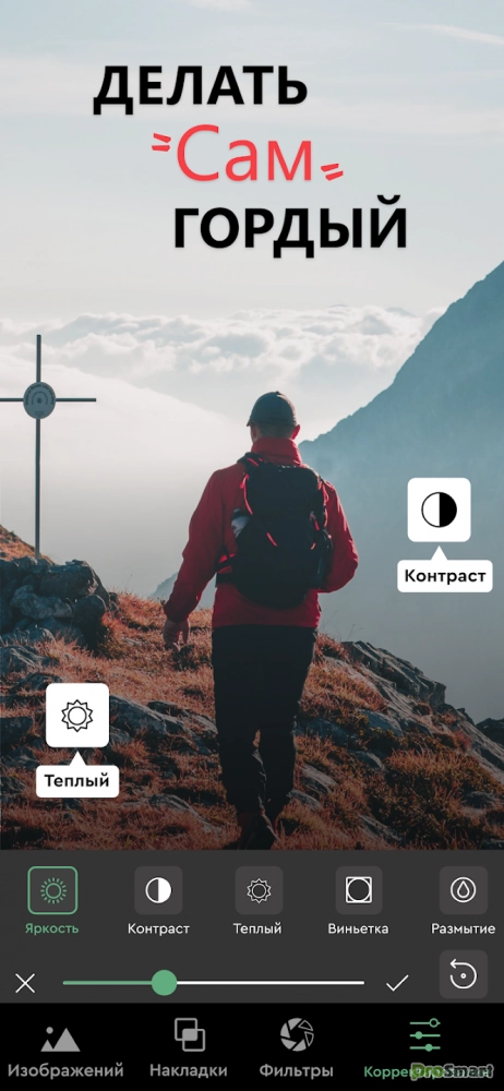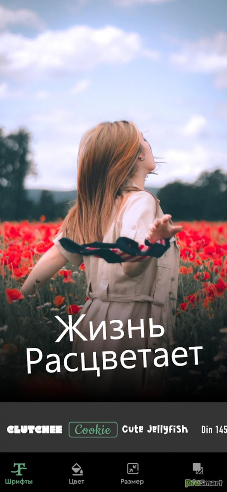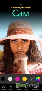 - Добавляйте текст к фотографиям и сохраняйте их в своей галерее или загружайте прямо в социальные сети.