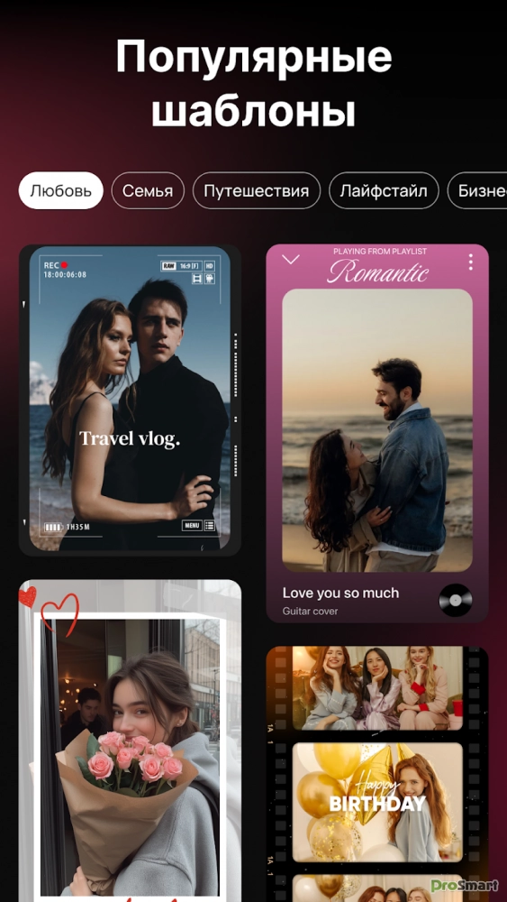 Photo Editor & AI Video Maker построен вокруг чистых и эстетичных шаблонов, созданных для реальной жизни. Вместо того чтобы создавать всё с нуля, вы просто выбираете шаблон, который сам задает композицию, темп и анимацию.
