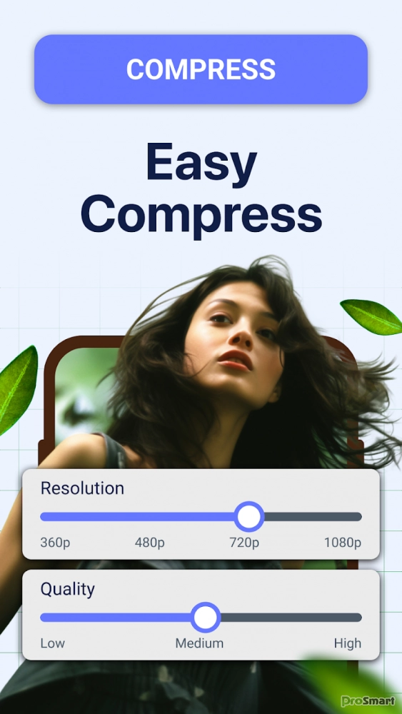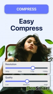 — Сверхбыстрый видеокомпрессор: одним нажатием можно сжать видео и уменьшить размер файла без потери качества. Незаменимый видеокомпрессор для уменьшения размера видео и сохранения большего количества воспоминаний.