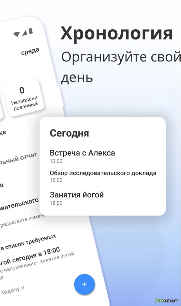 Это приложение с хронологией покажет все ваши ежедневные задачи, что поможет ставить реалистичные цели. Мощный календарь, в котором вы сможете распланировать свой день на хронологии.