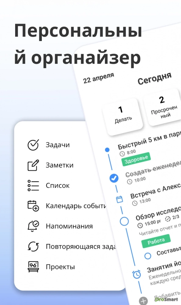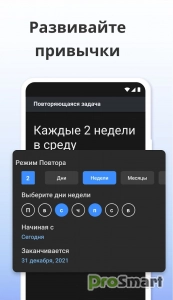 Создавайте ежедневные, еженедельные или ежемесячные распорядки с помощью повторяющихся задач. Отслеживайте свои привычки в хронологии.