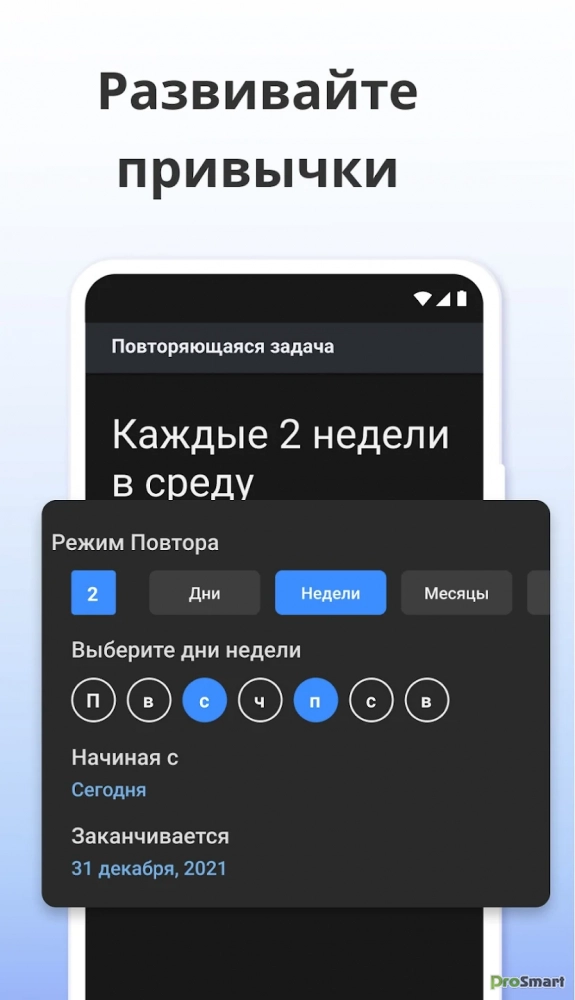 Больше никаких просроченных или незавершенных задач - только простые напоминания! Создание повторяющихся ежедневных, еженедельных и ежемесячных напоминаний поможет вам не забыть о важных событиях. Так же, как напоминание о задаче, вам будет отправлено напоминание с уведомлением.