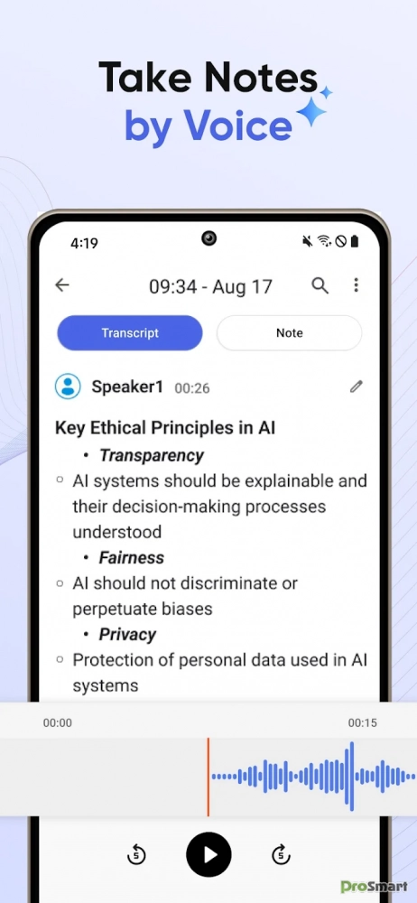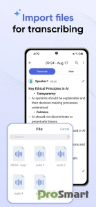 - Умная организация: воспользуйтесь преимуществами интуитивно понятного блокнота с искусственным интеллектом и голосового блокнота, чтобы аккуратно организовать расшифровку голосовых заметок и других записей. Держите свои заметки структурированными и доступными в любое время.
