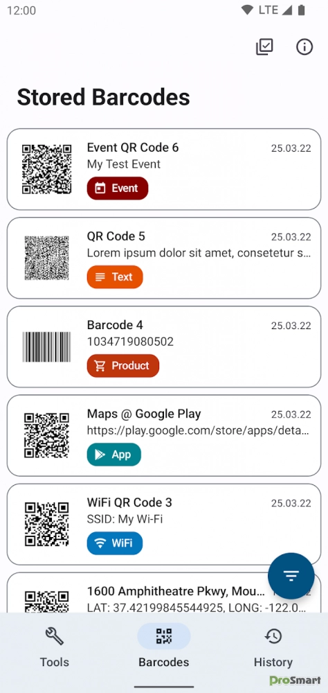 Сохраняйте созданные или отсканированные штрих-коды прямо в приложении, чтобы их можно было вызывать в любое время. Предоставьте им имя, описание и этикетку. Цвет штрих-кода также можно отрегулировать. Опции для обмена, экспорта, печати и применения штрих-кода всегда доступны.