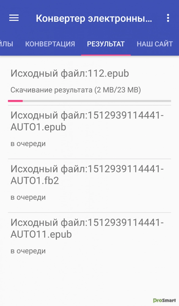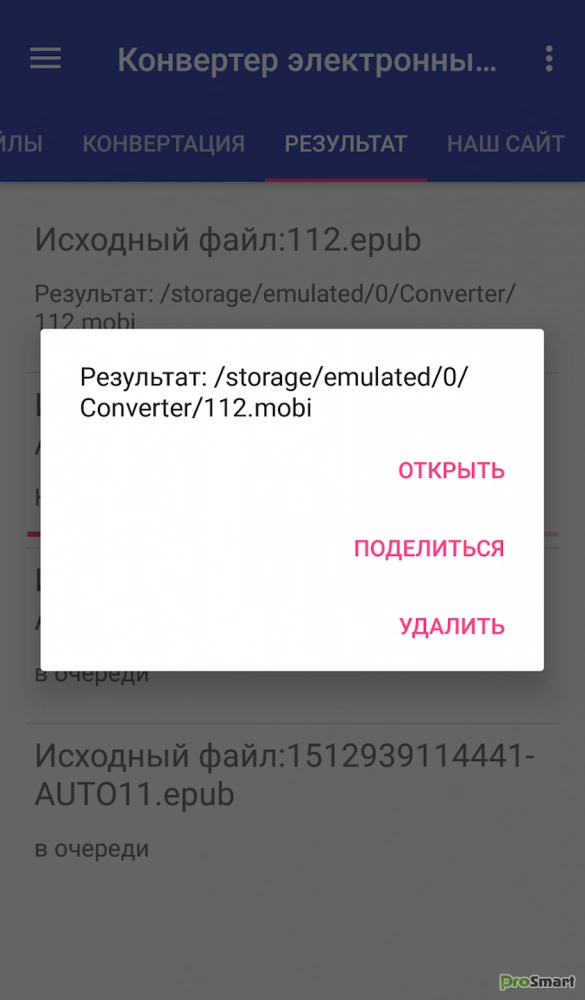 *. На сервере выполнится конвертация с помощью программы Calibre.