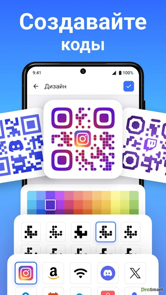 Считыватель кодов поддерживает все форматы QR и штрих-кода: QR code, Data Matrix, Maxi code, Code 128, Code 39, Code 93, Codabar, UPC-A, UPC-E, EAN-8, ITF.