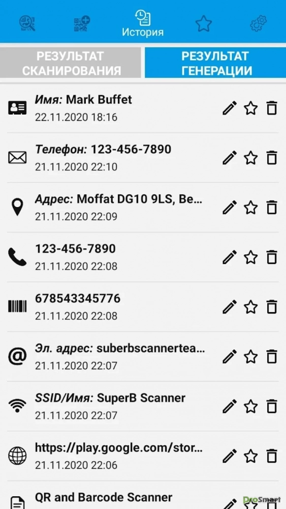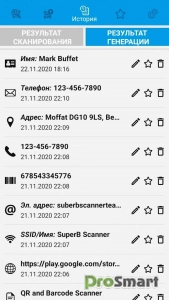 ► История: история сохраняется для всех сгенерированных или отсканированных QR-кодов и штрих-кодов.