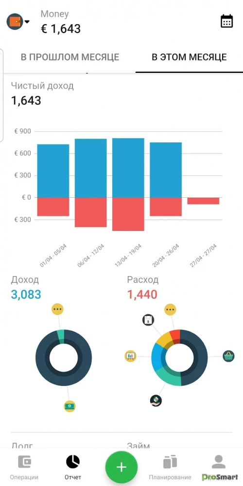 Легко контролируйте свои расходы, доходы, счета и долги. Наши понятные и быстрые отчеты делают управление финансами легким и приятным.