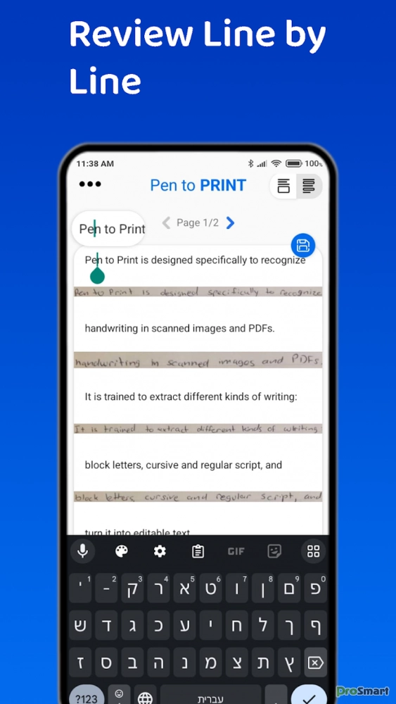 Наш уникальный механизм OCR (оптическое распознавание символов) извлекает рукописные тексты из отсканированных бумажных заметок и превращает их в цифровой редактируемый текст. В отличие от других приложений для сканирования OCR, оно разработано специально для распознавания рукописного текста от изображения до текста и отлично работает в качестве скорописного чтения и расшифровки неразборчивого рукописного текста.
