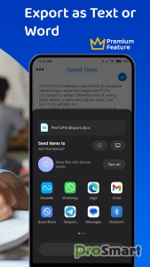 Перейдите на премиум-план, чтобы редактировать текст, сохранять его в файлах, копировать, отправлять по электронной почте (себе или другим), добавлять в заметки или делиться в приложениях для обмена сообщениями, доступных на вашем устройстве. Мы рекомендуем начать с преобразования изображения в текст и попробовать распознавание рукописного ввода бесплатно, а затем приобретать премиум-план, оценив качество результатов, которые приложение дает при преобразовании рукописного текста в текст.