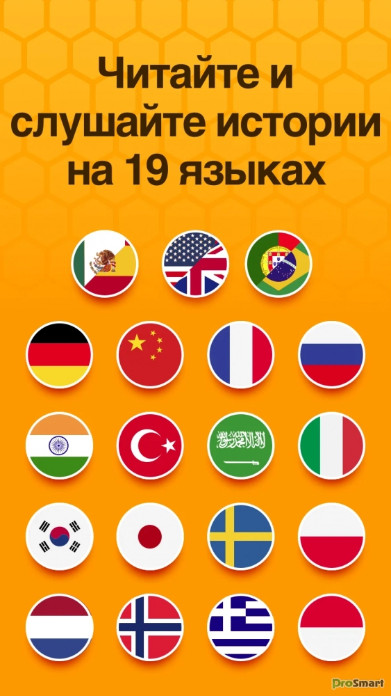 • Изучайте языки, читая истории на изучаемом языке – выбрав его из списка доступных языков!