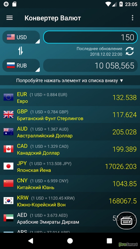 - После того, как курсы валют обновятся, можно использовать конвертер валют в автономном режиме. Перед поездкой за границу, обновите данные один раз.