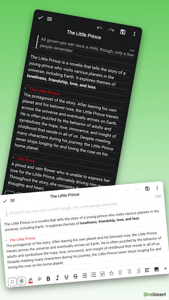 • Экспортируйте заметки и тексты в виде качественных изображений и легко делитесь ими.