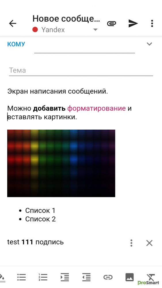 • Форматирование при написании (от цвета текста до списков)