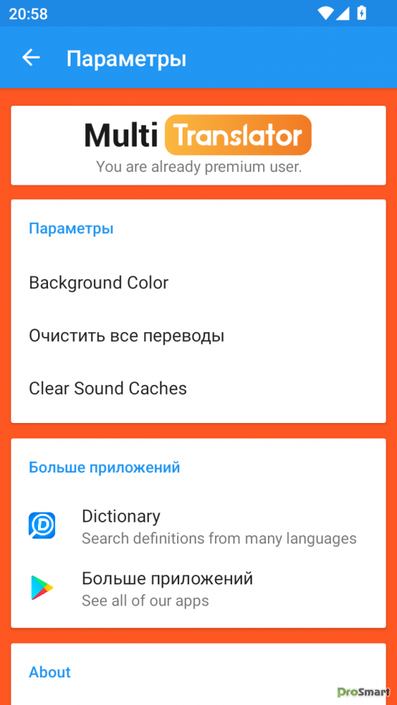 Настройте переводчик, отрегулируйте размер шрифта (меньше для больших переводов и больше, чтобы лучше читать) или измените цвет фона приложения, выберите один из 190 оттенков разных цветов.