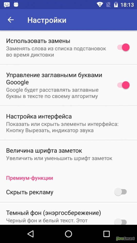 Премиум режим удаляет рекламу и имеет настройки для: