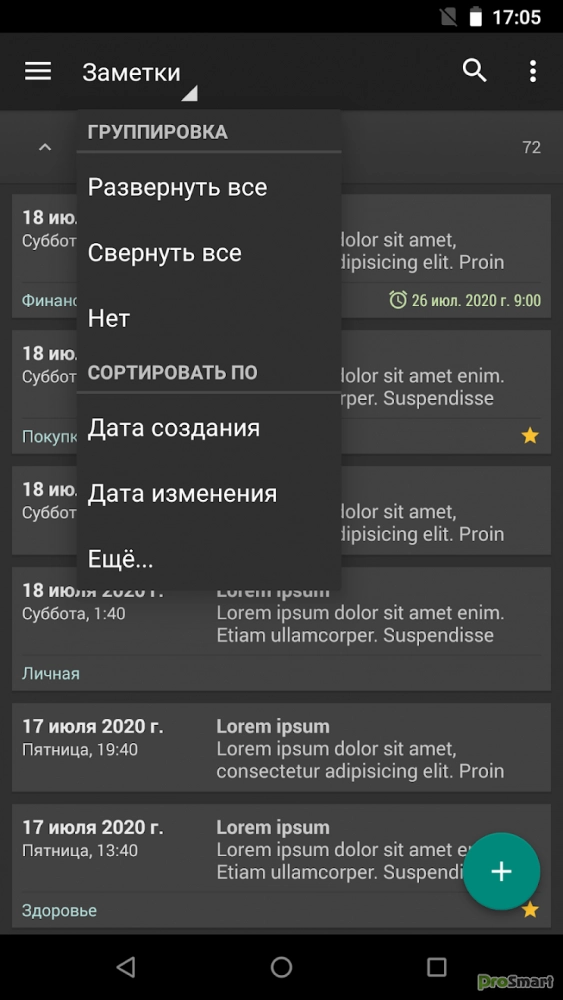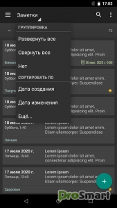 - Сортировка заметок по дате создания, дате изменения, заголовку и папке